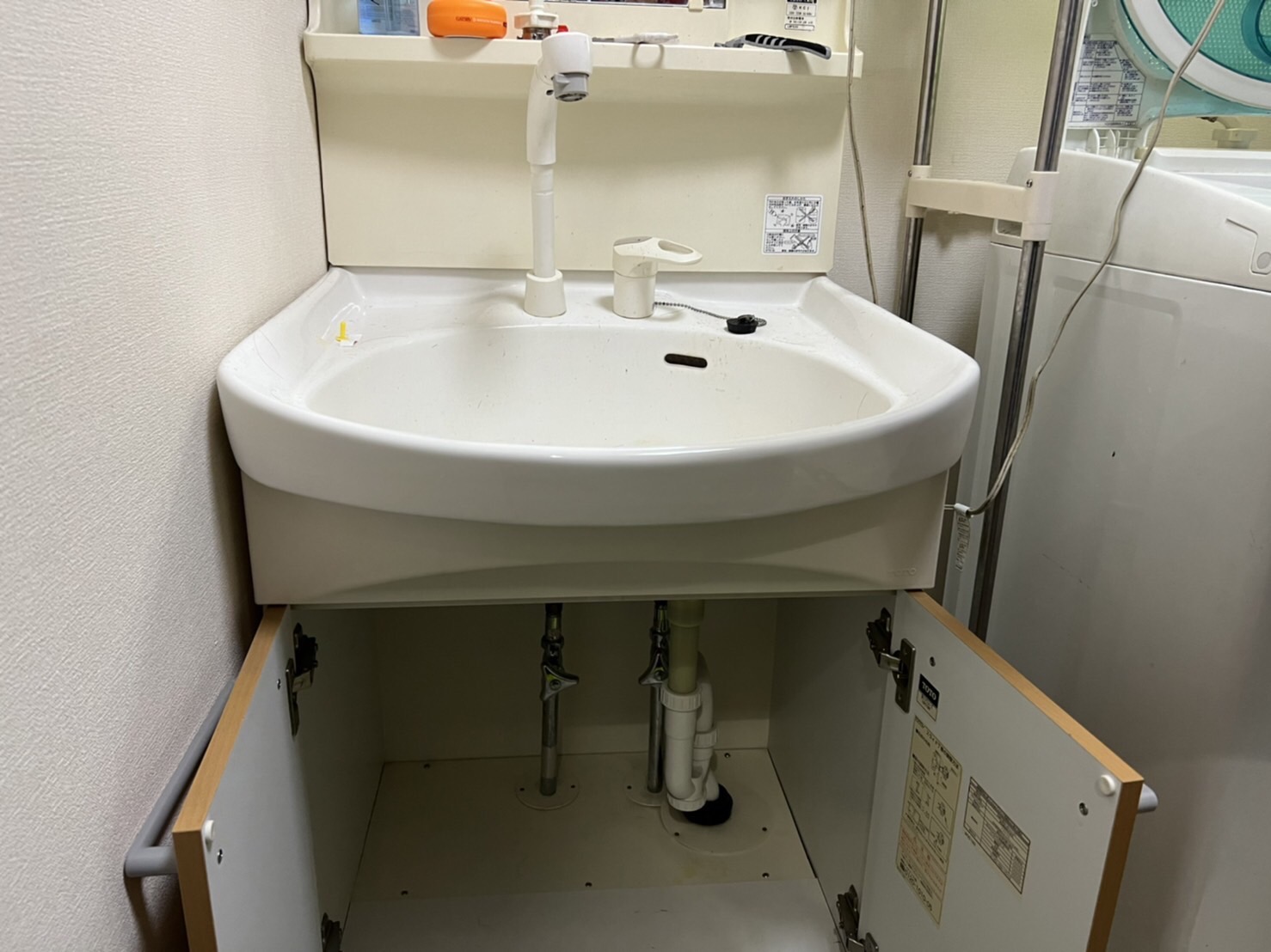 賃貸マンションのオーナー様からマンションの1室から洗面台の蛇口からぽたぽたと水が出て完全に止まらないとの依頼をうけ洗面台のシャワー水栓交換をしました。洗面台本体の交換になると費用もかかるしまだ使えるのでもったいないと話をし水栓だけの交換をすることになりました。