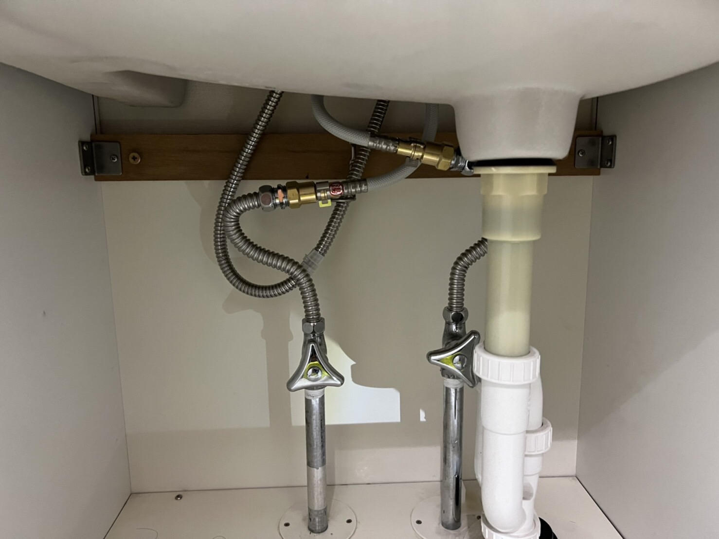 水栓だけの交換ならば1時間前後で交換が可能です。まだ使える物は使い悪くなっている部分だけを新しい物にかえる方が費用も時間も無駄にならないと考えております。